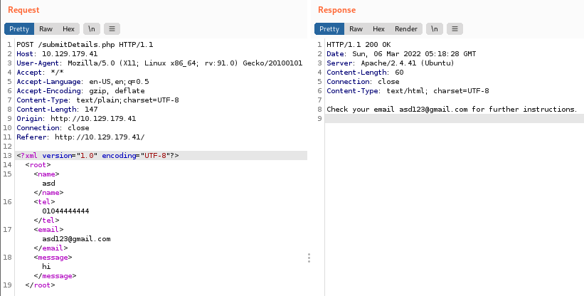 사용자의 입력값들이 XML 포맷의 형태로 서버로 전달되는데